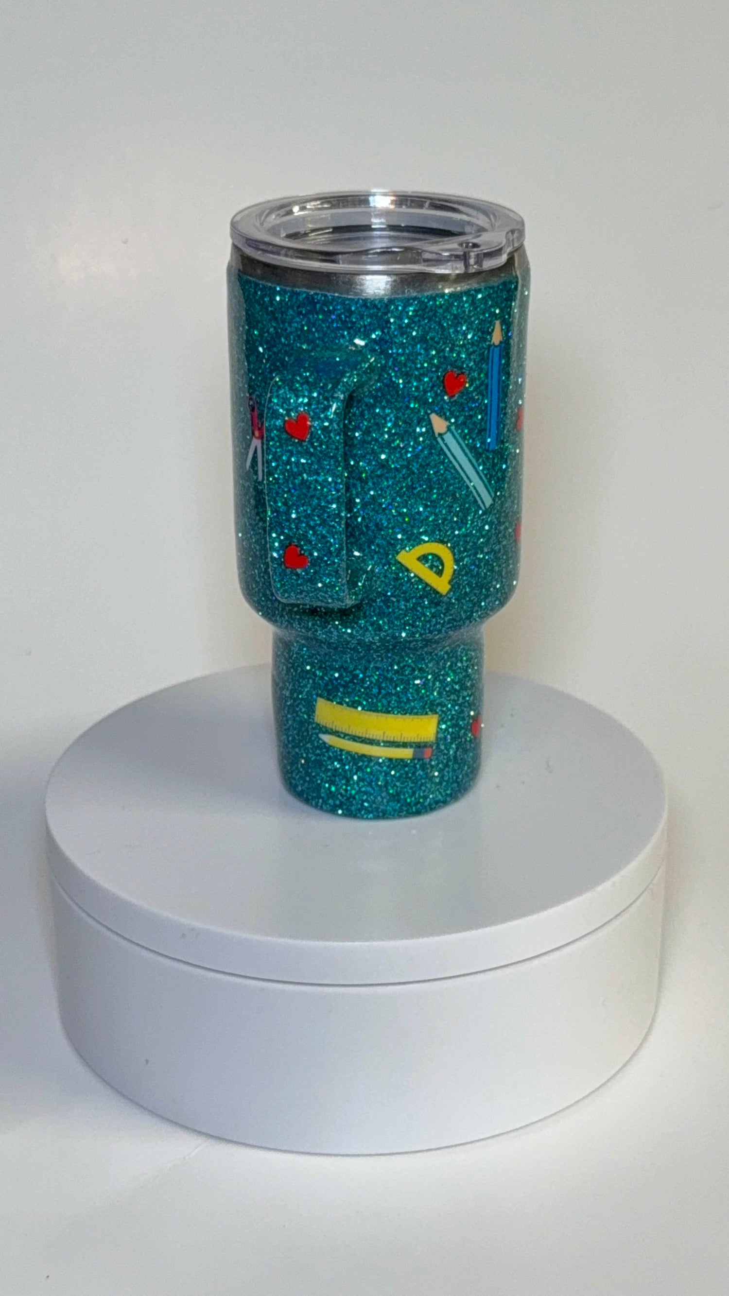 Dazzle your drink experience with our sparkling MINI blue glitter tumbler, showcasing striking school shapes and lively patterns that turn every sip into a celebration. This mini 4oz tumbler is ideally sized for a shot glass, memory cup, espresso shots, a gift, or simply for collecting. This delightful tumbler brings a burst of fun and character to your daily routine. Made from sturdy materials, it includes a straw and a lid. It will turn heads wherever you go!