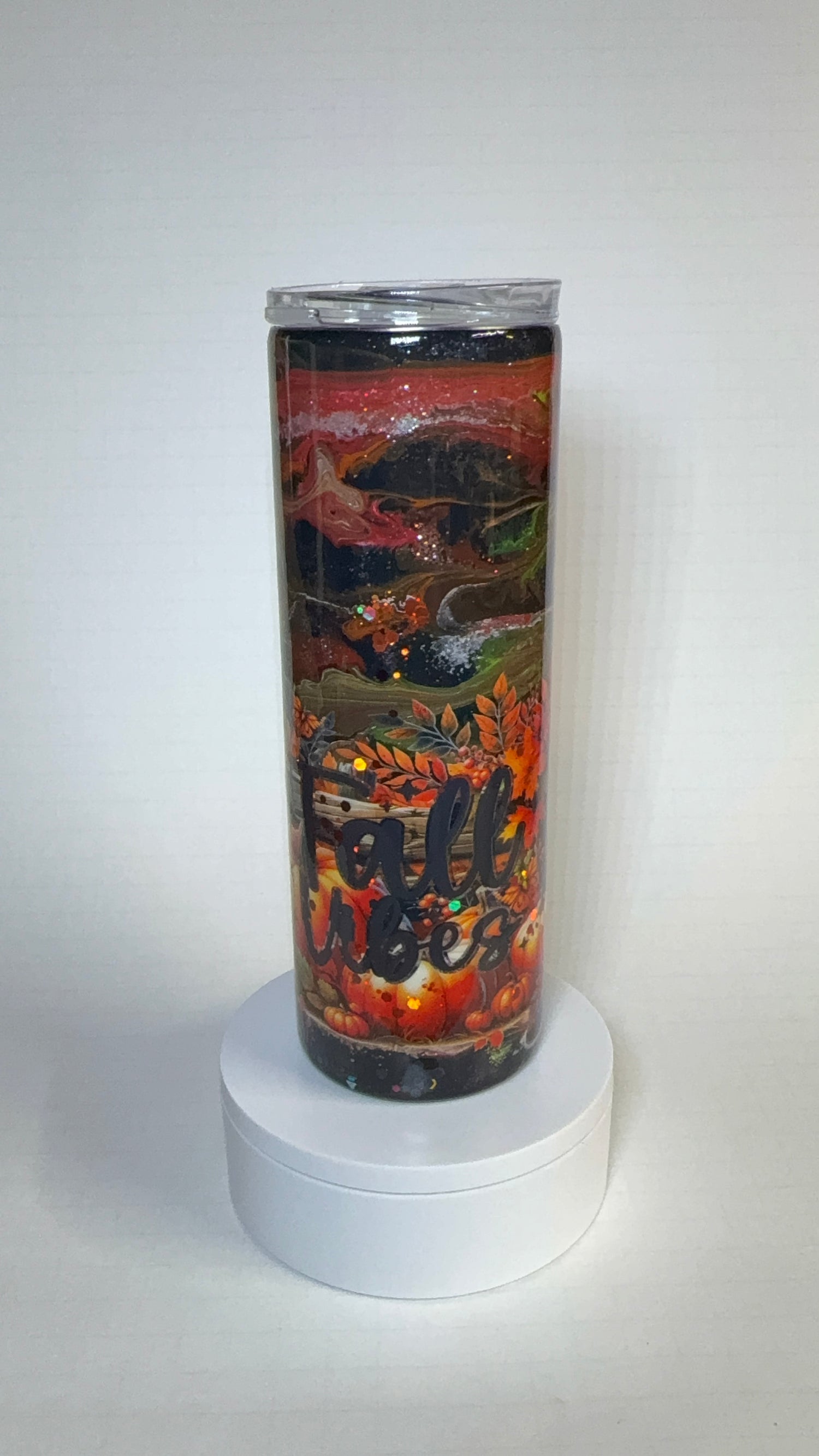 Our Fall Vibes Tumbler is elegantly decorated with vibrant autumn leaves and inviting seasonal colors. Showcasing the uplifting phrase 'Fall Vibes,' this tumbler is crafted to maintain your drinks either steaming hot or refreshingly cold throughout the day. Made from premium, durable materials and equipped with a secure transparent lid, it’s the perfect companion for your daily travels, outdoor escapades, or leisurely moments at home. Offered in a spacious 20oz size, this tumbler is a wonderful gift for anyone who adores fall and appreciates stylish, practical drinkware.